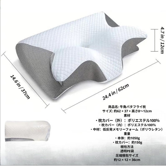 角型バタフライ型ネックサポート枕 高反発メモリーフォーム採用 頸椎サポート 人間工学設計 快眠枕(枕芯)
